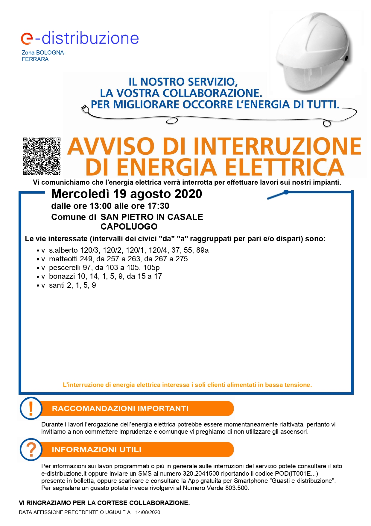 Interruzione elettricità 19 agosto 2020