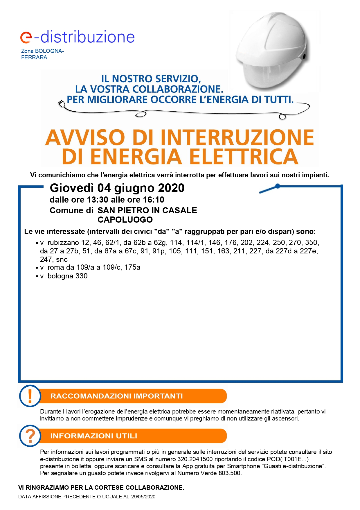 Interruzione elettricità 4 giugno