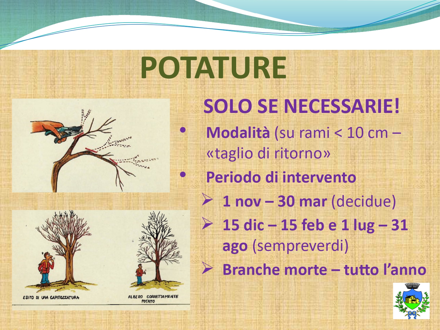 i principi; come e quando effettuare la potatura; la procedura da seguire se si deve abbattere un albero