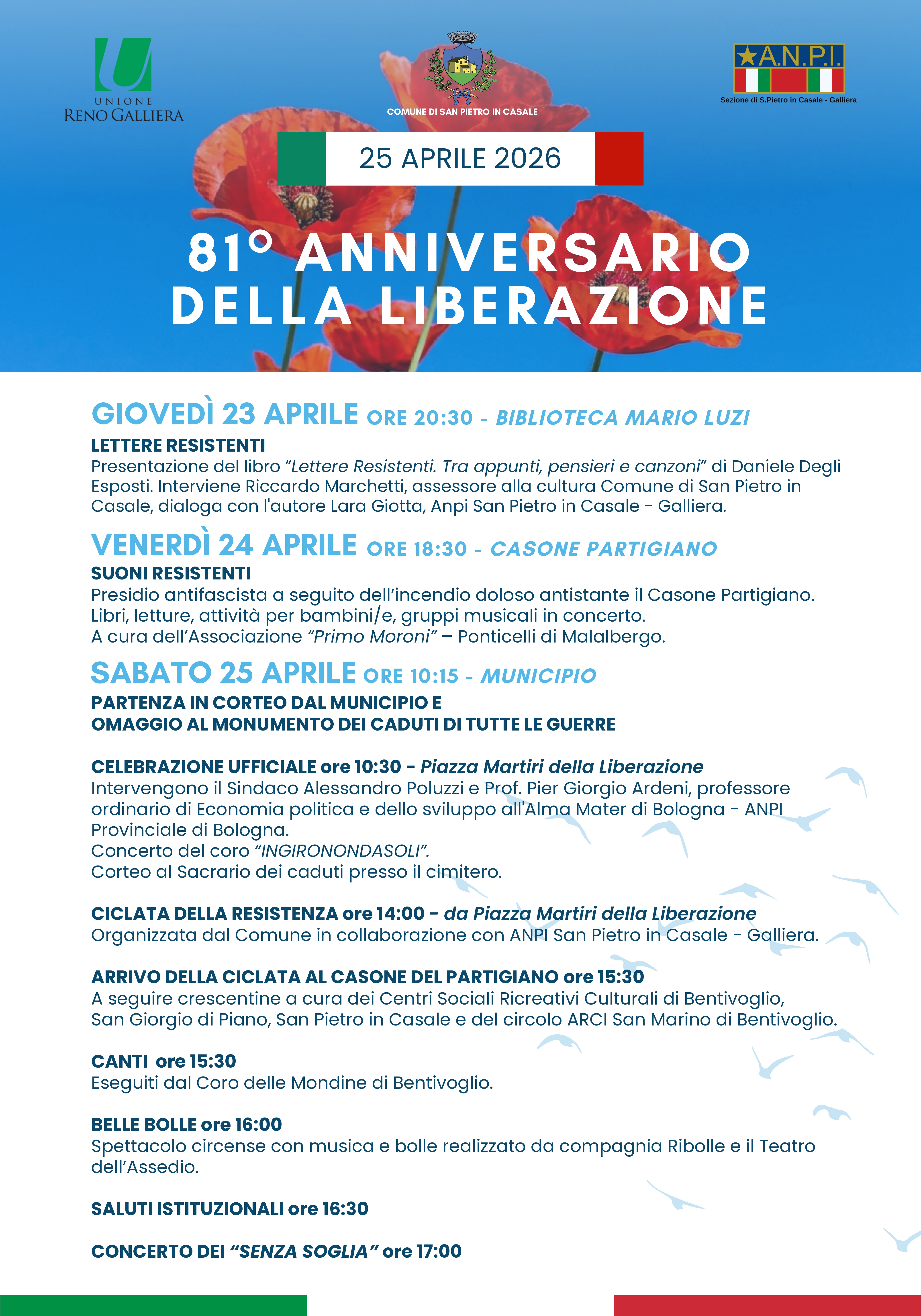 Le iniziative in programma a San Pietro in Casale in occasione del 81° anniversario della Liberazione